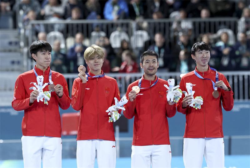 速度滑冰男子团体追逐自2006年进入冬奥会以来,该项目奖牌长期被欧洲传统强队垄断,中国队在2022北京冬奥会上首次亮相该项目,获得第八名。本届冬奥会,由河北省运动员李文淏与队友宁忠岩、吴宇、刘瀚彬组成的中国队一路逆袭闯关,先是在1/4决赛中力克挪威队,又在B组决赛(铜牌赛)中顶住巨大压力,稳扎稳打,以0.09秒的优势战胜荷兰队,夺得铜牌。这枚奖牌不仅是中国队在冬奥会速度滑冰团体项目上获得的首枚奖牌,打破了欧洲强队在该项目上的长期垄断,更是河北运动员在冬奥会上获得的首枚奖牌,实现了河北冬奥奖牌“零的突破”,书写了河北冰雪运动崭新的篇章。
